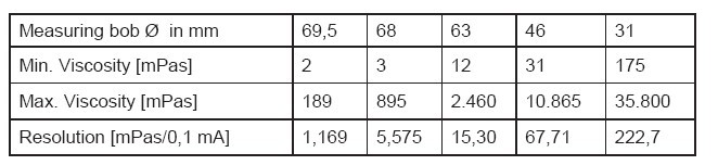 轉子粘度范圍表: